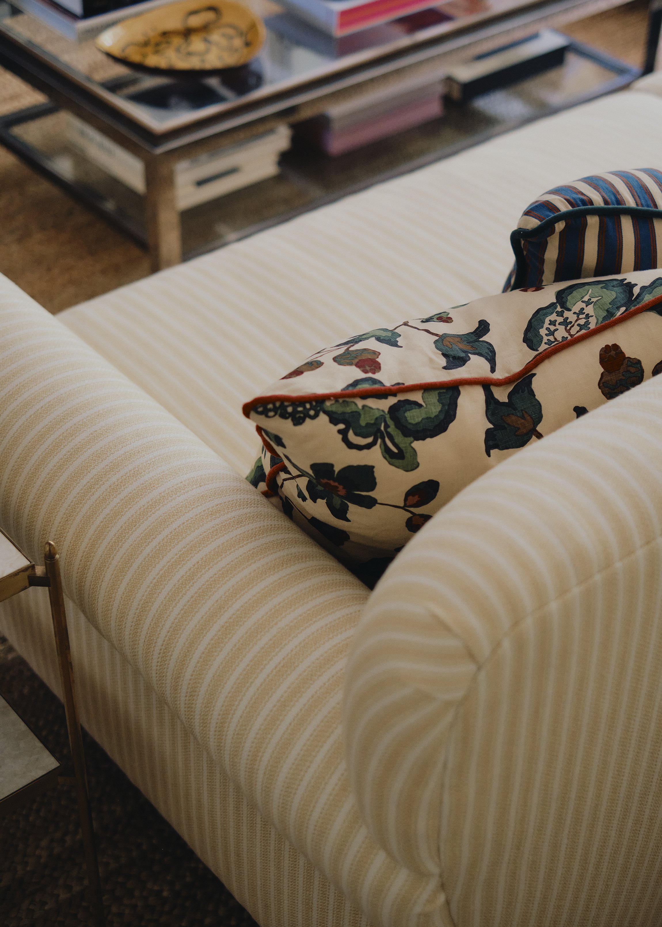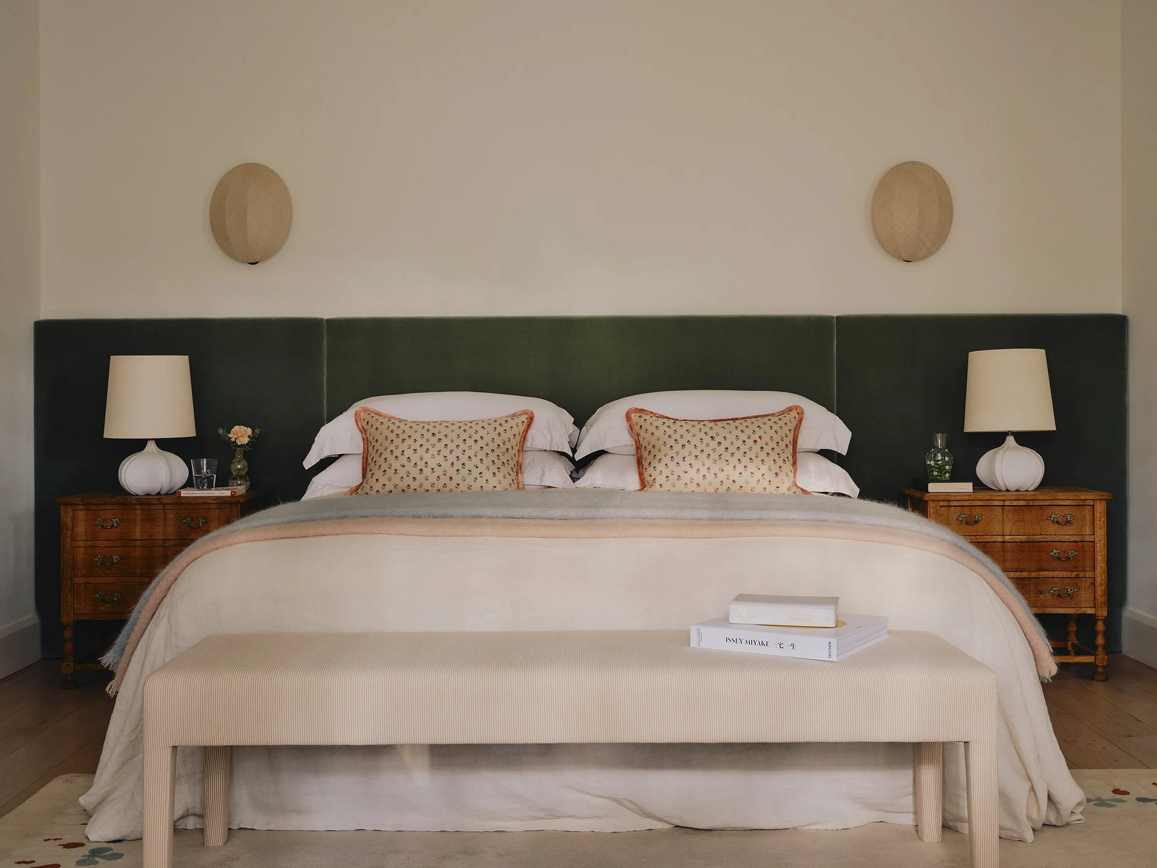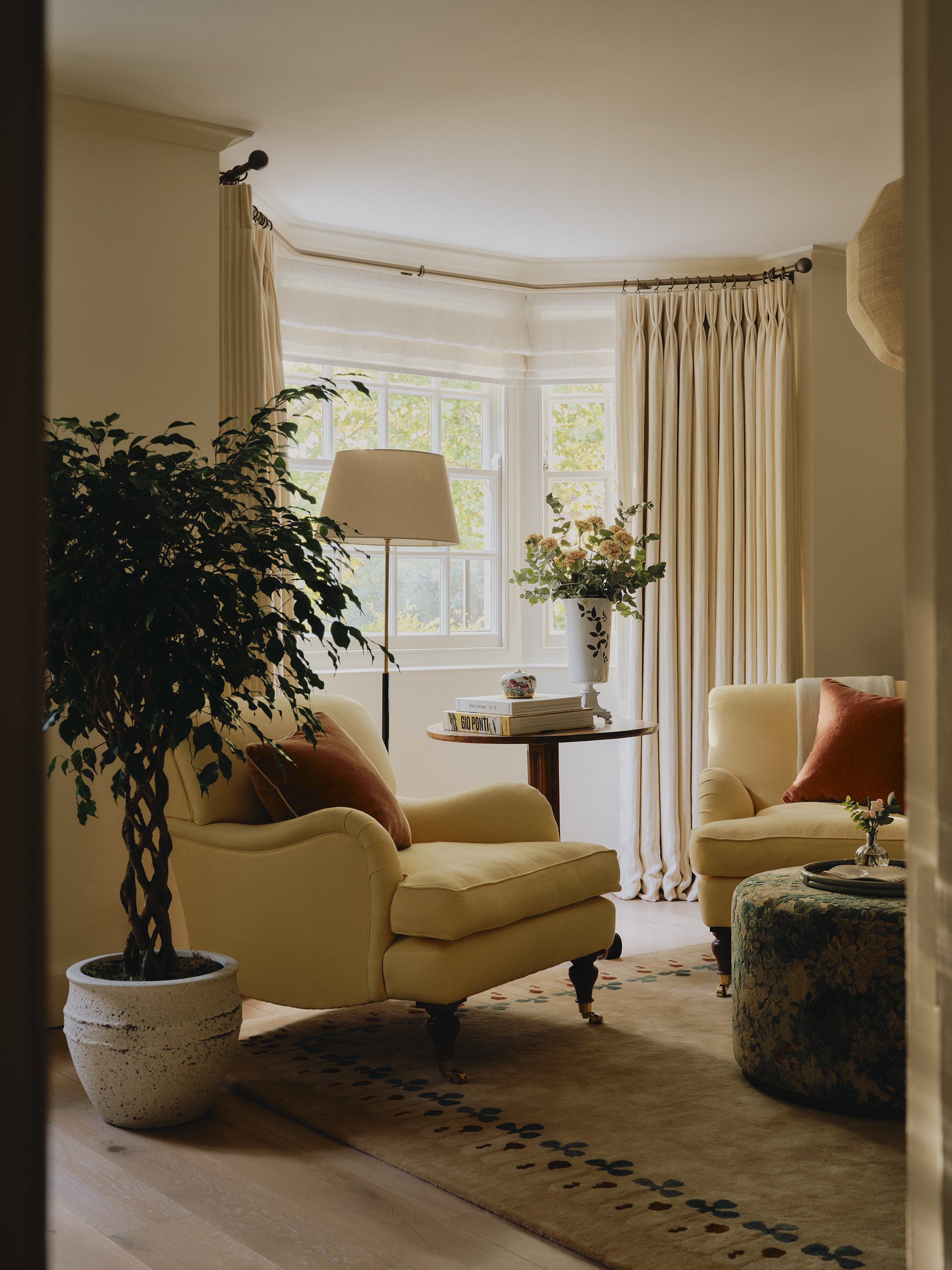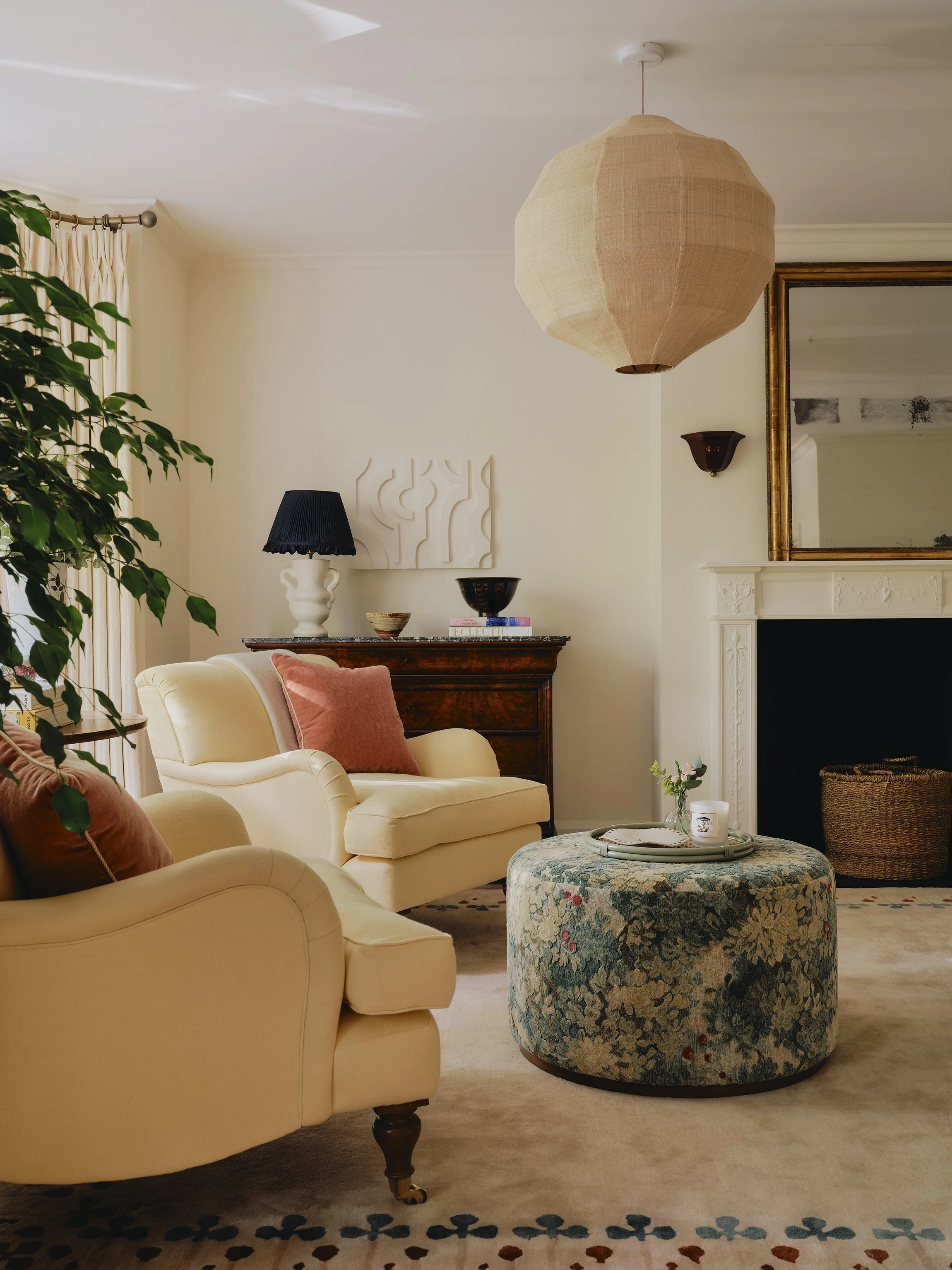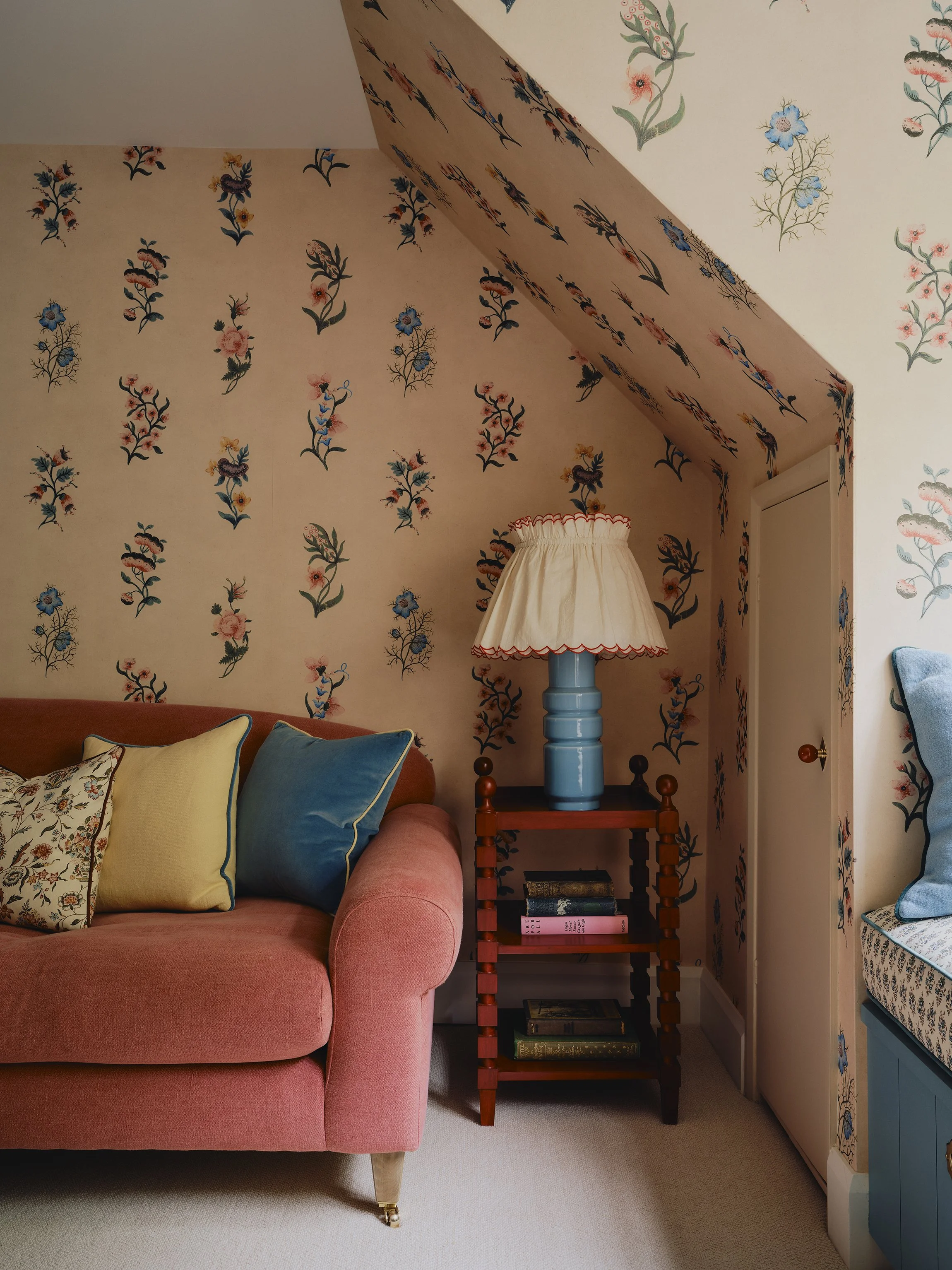 The client was very keen for me to create some really exciting, layered & homely spaces for their two daughters. In the Playroom we added in the window bench, and had a lot of fun with the colour scheme, layering up different patterns & textures to create an inviting yet functional space for their two young daughters & their friends at the top of the house.