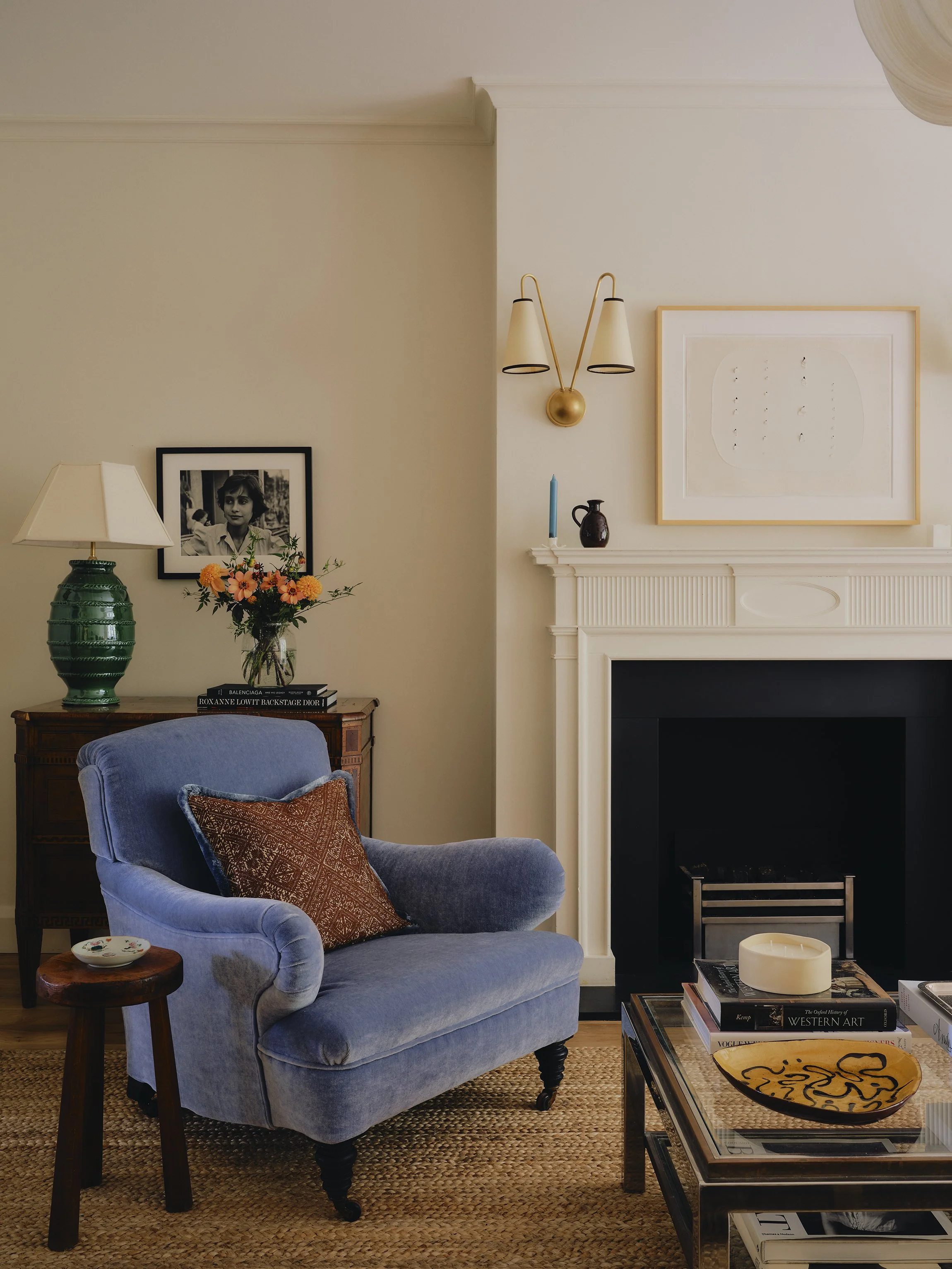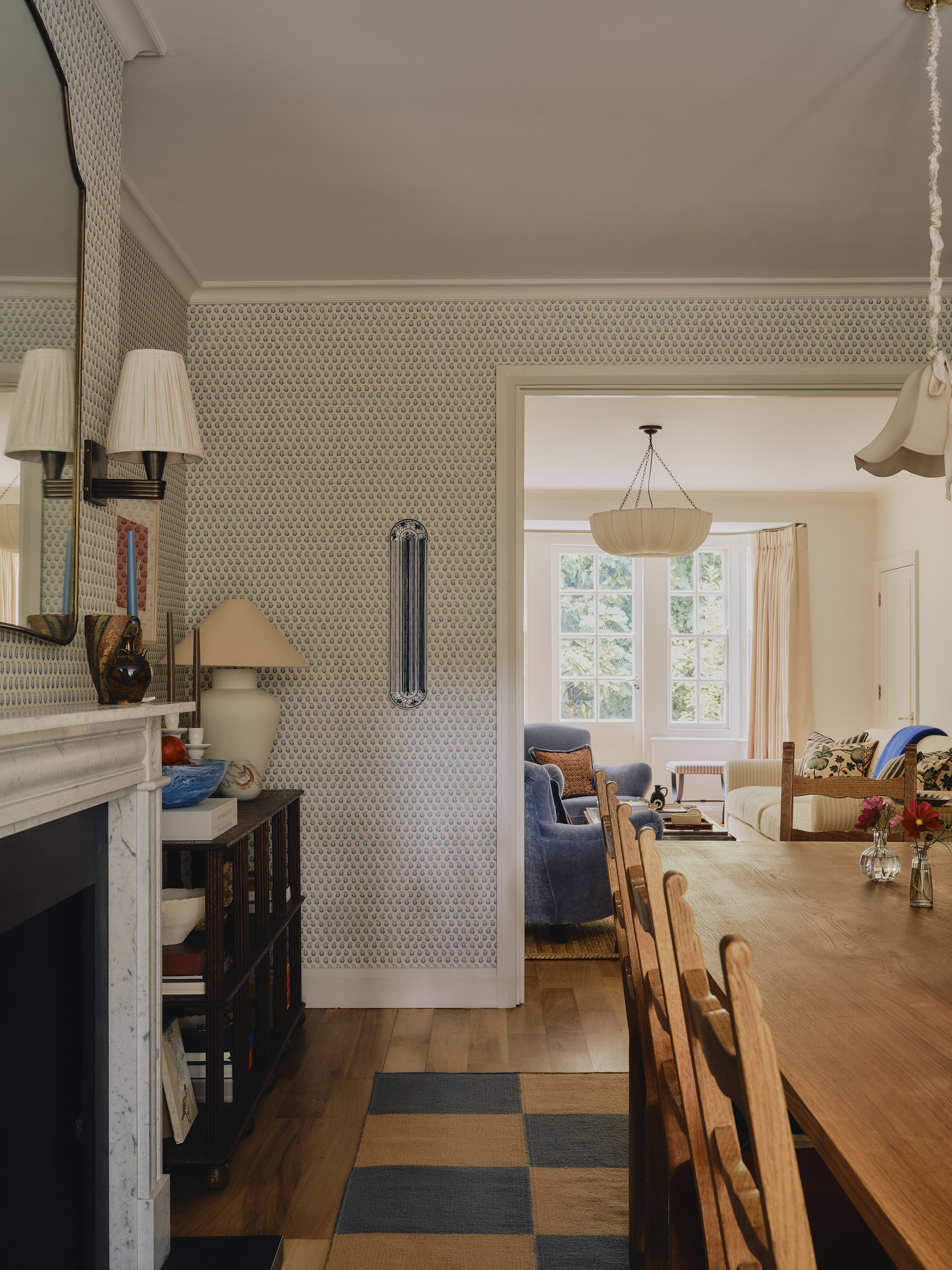 It felt important to distinguish the two connecting spaces of the Dining Room & Living Room separately with their own identity, and Howe’s Cypress paper felt like a great backdrop to the dining room, softening the space yet still allowing for the client’s bold artwork to hang proudly.